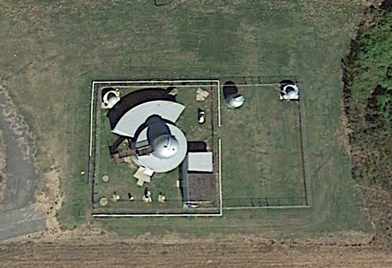 The dome contains a 14 inch Meade SCT. The flat-top building on the right contains a 6 inch refractor.